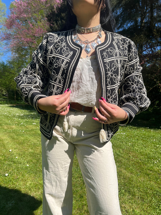 Veston droit brodé noir Somboon