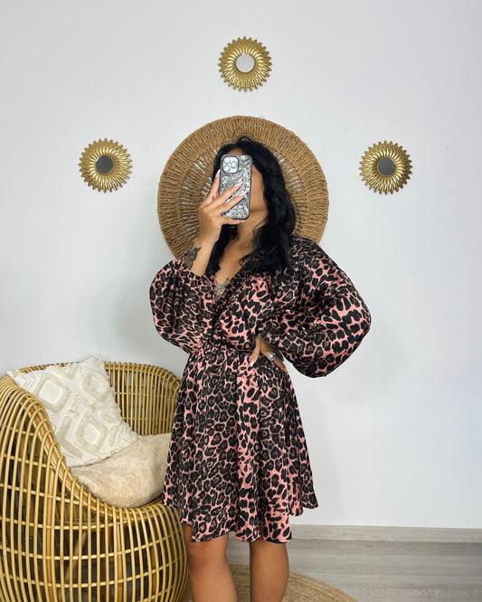 Robe léopard satinée Dara