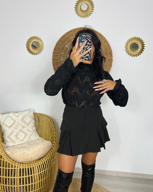Blouse ajourée à col victorien noir Samran